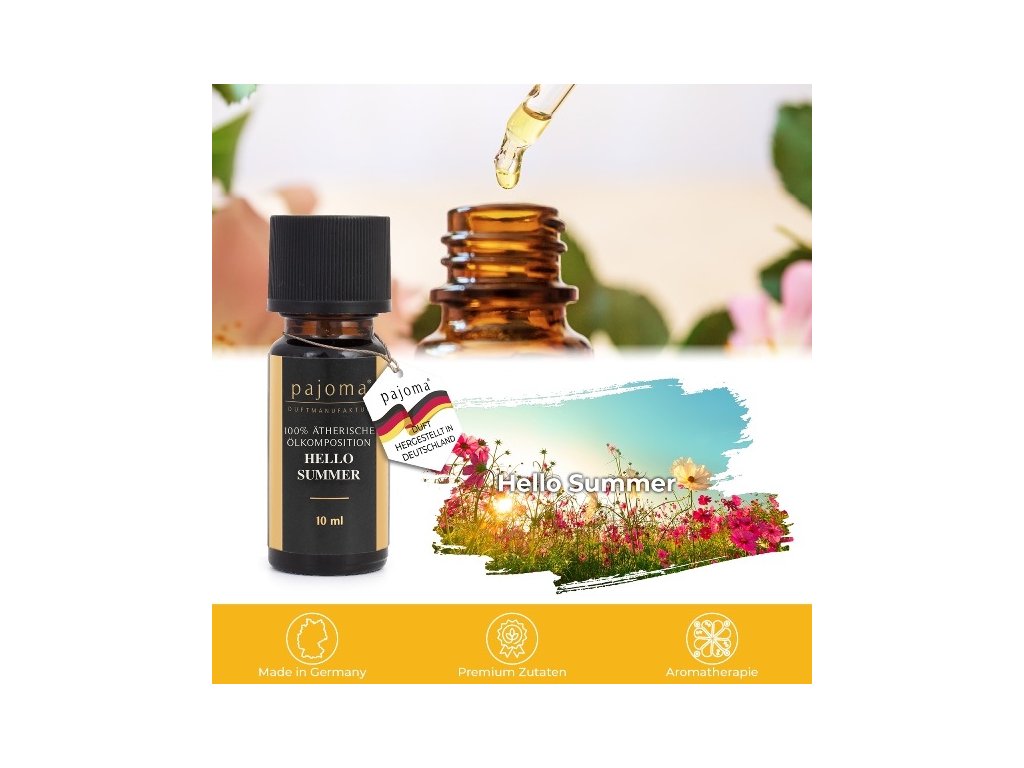 Naše esenciální oleje jsou vyrobeny v Německu s maximální péčí a důrazem na kvalitu. Každý produkt obsahuje 100% přírodní složení, bez jakýchkoli syntetických přísad. Díky vysoké koncentraci a výběrové kvalitě přinášejí intenzivní vůni a autentický zážitek aromaterapie přímo k vám domů.