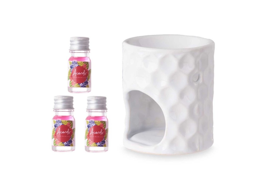 Aromalampa bílá keramická + 3×5 ml esenciální olej zdarma