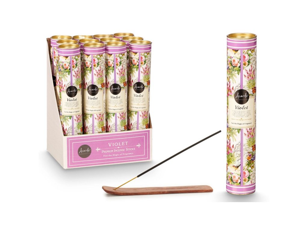 FIALKY, 30 ks, VONNÉ TYČINKY SE STOJÁNKEM, V PEVNÉ KULATÉ KRABIČCE