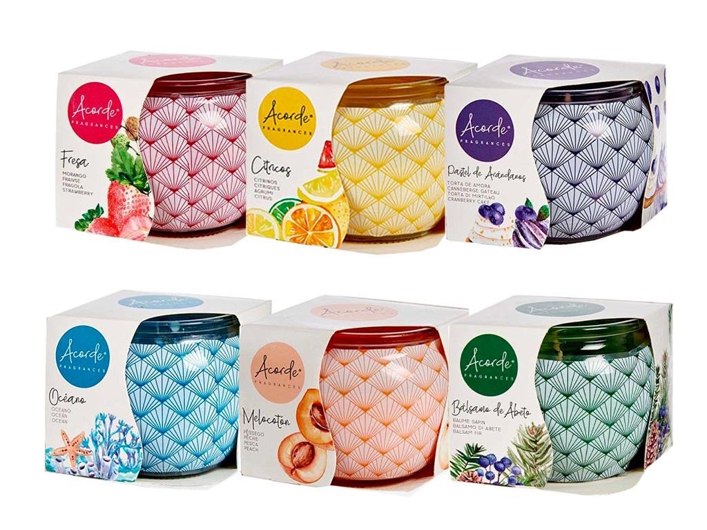 MIX VŮNÍ - 6 ks prémiových svíček ve skle s potiskem, různé vůně + praktický zapalovač ZDARMA