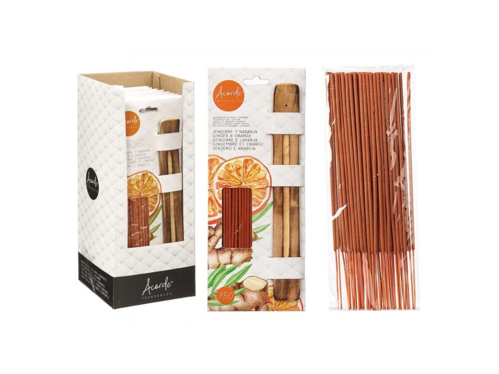 POMERANČ & ZÁZVOR, 50 ks, VONNÉ TYČINKY SE STOJÁNKEM